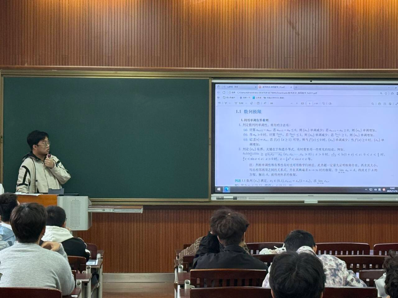 摘要:11月16日下午,重庆大学资源与安全学院学生会在虎溪校区D1136教室举办了“高数加油站”期中复习指导活动。帮助大一新生系统复习高等数学,迎接期中考试。活动围绕“知识点串讲”与“题目精讲”展开,通过专题讲解、例题演练与互动答疑,助力同学们夯实基础、提升解题能力,营造了浓厚的学习氛围。