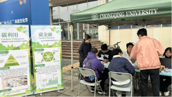 摘要:2025年12月18日,重庆大学资源与安全学院学生碳中和协会在虎溪校区一食堂南广场举办“挑战杯”科技文化节展览活动。活动通过低碳科技互动展与绿色创意工作坊两大板块,向在校学生普及“双碳”知识,倡导低碳生活方式,营造校园科创氛围,吸引众多同学积极参与。