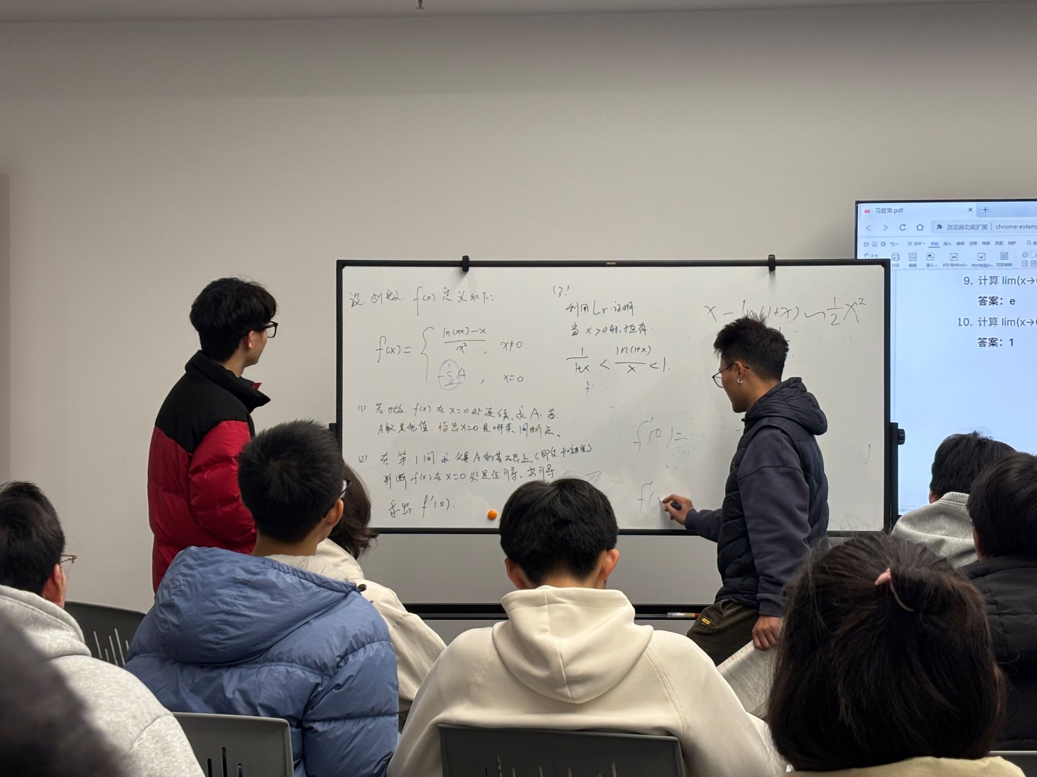 为迎接即将到来的高等数学期中考试,2025年11月23日晚,资源与安全学院学业助理博士生孟佳佳在学院楼510多媒体会议室组织开展高等数学辅导活动,为2025级智能采矿工程专业两个班的学生拨开知识的迷雾。