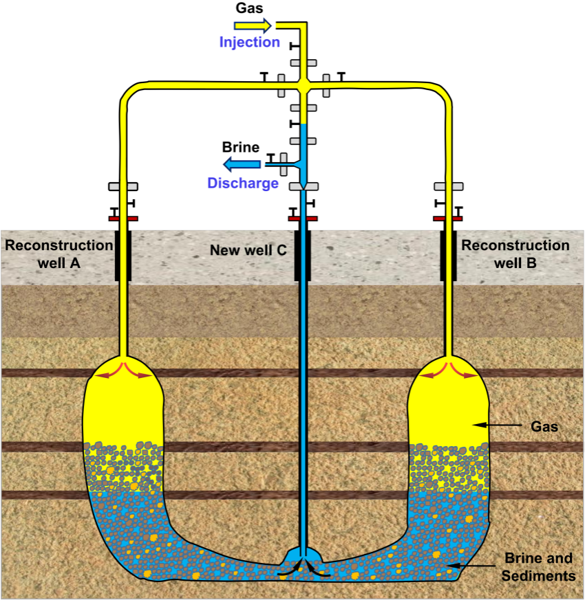 低品位盐层盐穴“沉渣空隙储气”的工作原理图