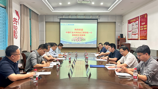 2025年10月16日下午,中国矿业大学安全工程学院党委书记宋冰一行到我院调研交流并召开座谈会。学院党委书记葛兆龙,院长、煤矿实验室常务副主任聂百胜,党委副书记李丞杰,副院长周雷及煤矿实验室副主任甘泉等相关人员参加座谈会。会议由葛兆龙主持。
