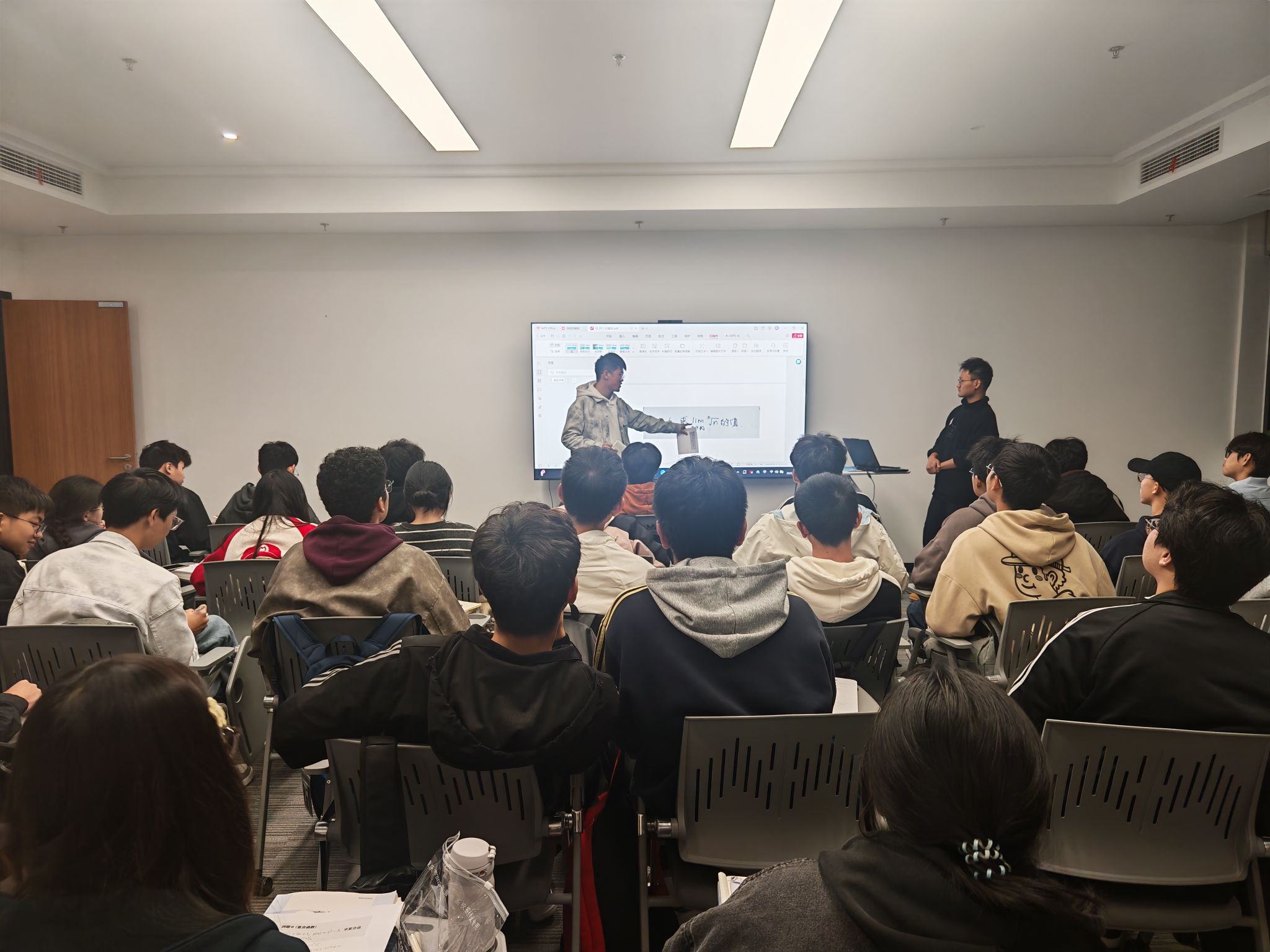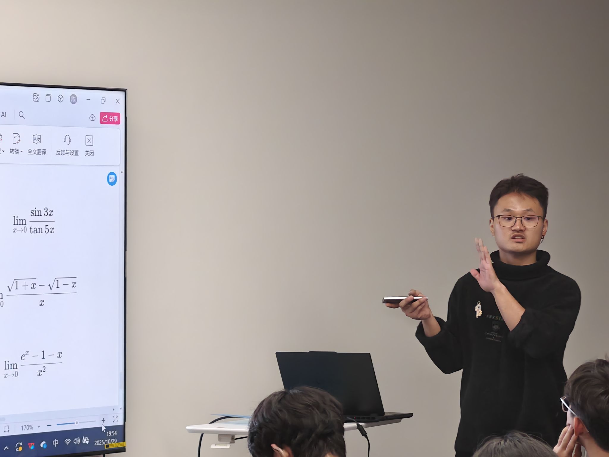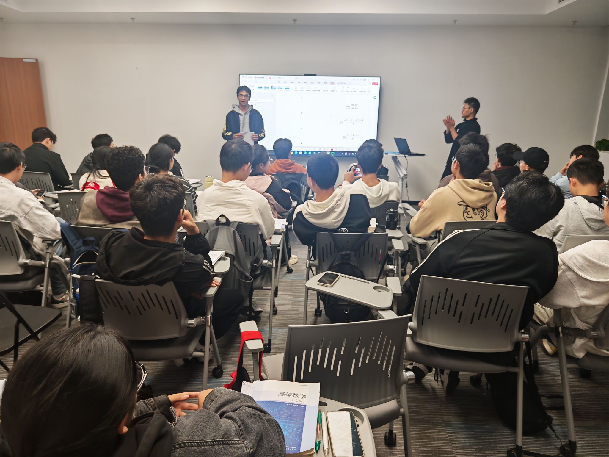 孟佳佳结合网络视频学习资源,为大一新生系统梳理了求极限的常用方法与思路误区,并结合自身学习经验分享了高数学习的有效路径。学业助理准备了五十道典型题目供同学们随堂练习,还随机邀请十位同学上台讲解思路,现场互动积极、气氛活跃,在交流中深化了对知识的理解。