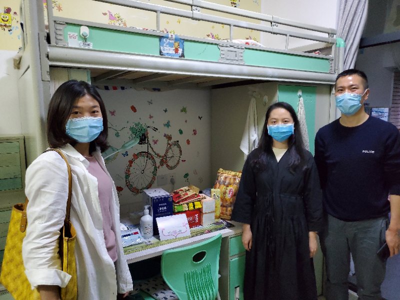 会后,副书记刘志国同辅导员研究并部署了具体工作,在学院办公室的支持下,学工室迅速采买了口罩、消毒纸巾、免洗消毒洗手液、体温计等防疫套装及牛奶、饼干、面包等慰问品,从当日11点至21点30分,所有物资分发至A区及虎溪7栋宿舍楼20个寝室。为了让学生能在舒适的环境中学习、生活,辅导员付彩红主动为虎溪返校学生清洁宿舍。
