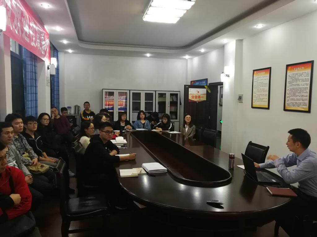2019年10月24日下午16时,重庆大学资源与安全学院党委书记陈大勇在学院211会议室,为研究生安全专业硕士生一支部、本科生四支部全体成员上“不忘初心、牢记使命——发挥学生党员在双一流建设中的骨干作用”主题党课。