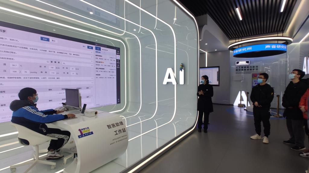 在智慧工作馆,工作人员向实践团展示了“园区智慧交通”、“渝快办”展示交通、政务相关的智慧城市服务,讲解了通过“社区医生”日常工作场景,呈现“电话机器人随访”、“智医助理”辅助诊断的智慧医疗服务。实践团亲身体验了“出口成章”“声音研究所”智慧教育服务与3D裸眼观影。