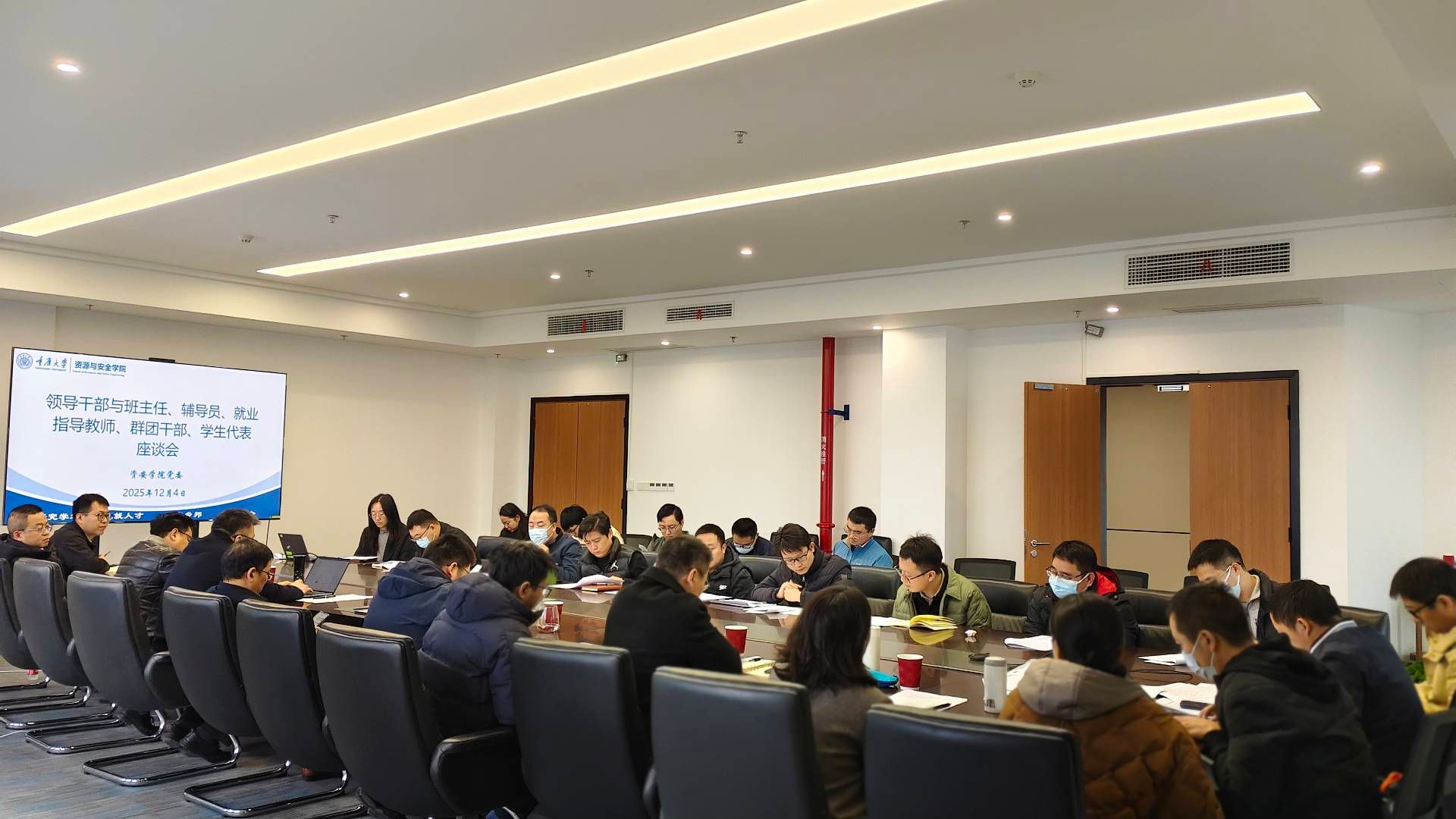 2025年12月4日上午11:00,资源与安全学院在学院楼GD512会议室召开育人工作座谈会,院领导、班主任、辅导员、就业指导老师及群团干部齐聚,围绕学生工作重点难点研讨,凝聚育人合力。学院党委书记葛兆龙、院长聂百胜,党委副书记李丞杰,副院长王开成,副院长周雷,煤矿灾害动力学与控制全国重点实验室副主任夏彬伟、张振宇、甘泉等参会。