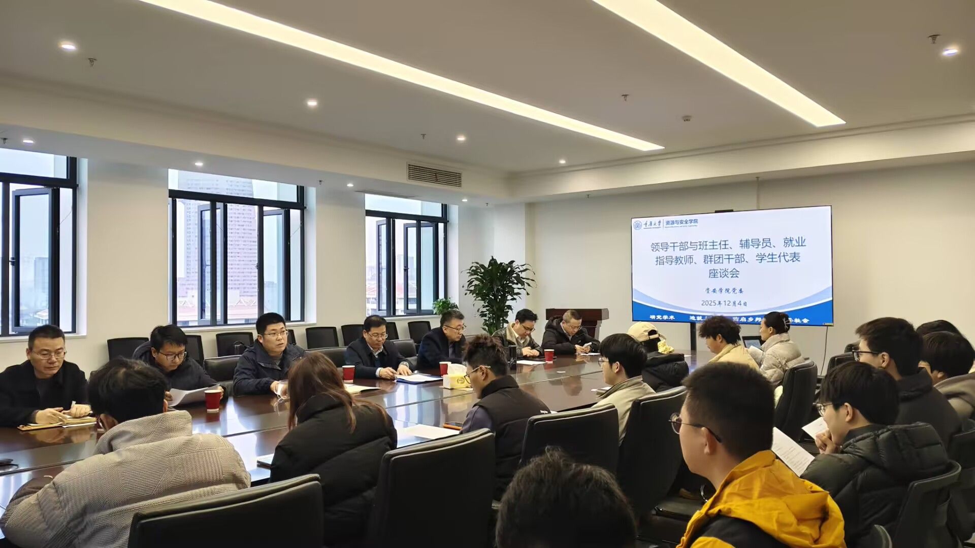 2025年12月4日10:00,资源与安全学院在GD512会议室召开座谈会,党委书记葛兆龙、院长聂百胜等院领导,全国重点实验室相关副主任,各年级博硕士、本科生代表及辅导员参会,围绕学生成长发展需求深入交流。