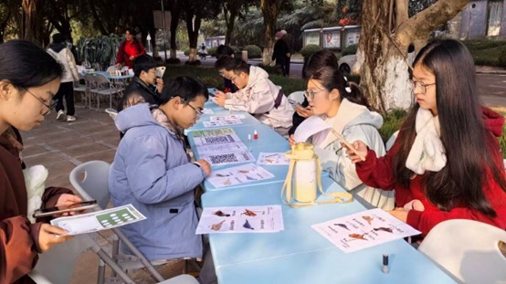 2025年11月29日,由重庆大学心理健康教育与咨询中心主办,资源与安全学院承办的“筑梦百年·心润成长”心理赋能系列活动——“观羽护生・栖心于林”自然疗愈体验活动在科学城校区一食堂南广场对面树林顺利开展,学生绿色青年志愿者服务队的同学们为本次活动的组织和策划贡献了很大的力量。本次活动融合观鸟体验、心理疗愈与动物保护主题,通过多元互动形式,帮助学生在亲近自然的过程中缓解压力、调节情绪,实现生态认知与心理健康的双向赋能。