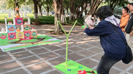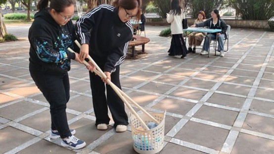 在“护生传情”板块,“萌鸟出击”与“筷夹援生”等互动游戏,既考验团队协作,又深化了动物保护意识。同学们在击打有害物品、合作救援动物玩偶的趣味过程中,增强了对生态保护的共情与责任感。