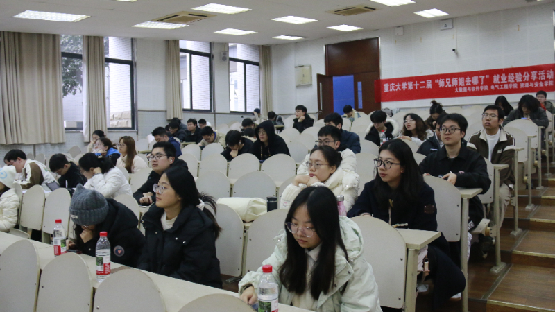 为切实提升就业育人实效,引导学生树立正确择业观,增强职业发展能力,2025年12月14日下午,资源与安全学院、电气工程学院、大数据与软件学院联合举办的“师兄师姐去哪了”—研究生就业/升学经验分享会在科学城校区虎溪校园D1137教室顺利开展。本次活动围绕就业与升学主题,特别邀请了6位2023级优秀硕士研究生做经验分享与交流,为低年级研究生分享他们在求职道路上的宝贵经验与深刻感悟。活动吸引了百余名学生前来参与,现场交流热络,气氛活跃。
