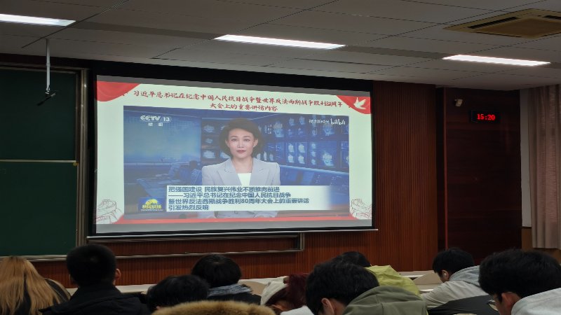 活动伊始,环节一“烽火中的精神传承”拉开序幕。现场主持人带领同学们系统学习了习近平总书记在纪念中国人民抗日战争暨世界反法西斯战争胜利80周年大会上的重要讲话精神,大家一同回望那段山河破碎却热血沸腾的抗战岁月。从抗日英雄的舍生取义到中国共产党的中流砥柱作用,一幅幅历史画面、一段段英雄事迹让在场学子深受触动,深刻领会了伟大抗战精神的时代内涵。