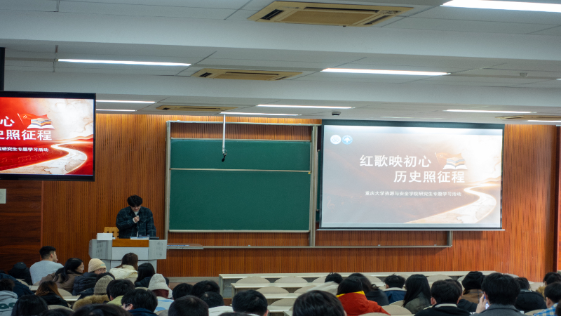 为传承红色基因、厚植家国情怀,让青年一代在旋律中重温历史,在故事中感悟担当,重庆大学资源与安全学院研团委研会于2025年12月26日15:00,在重庆大学科学城校区虎溪校园D1231教室组织开展研究生专题学习活动之“红歌映初心,历史照征程”专题活动。本次活动旨在引导广大研究生从红色歌曲中汲取精神力量,深刻理解中国共产党百年奋斗的光辉历程,增强民族自豪感与历史责任感。