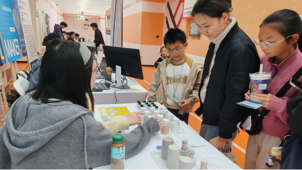 学生碳中和协会的展区内,社团成员们热情接待每一位参观者,通过实物展示、图文讲解、现场互动等方式,全面呈现了社团的科研成果与发展理念。