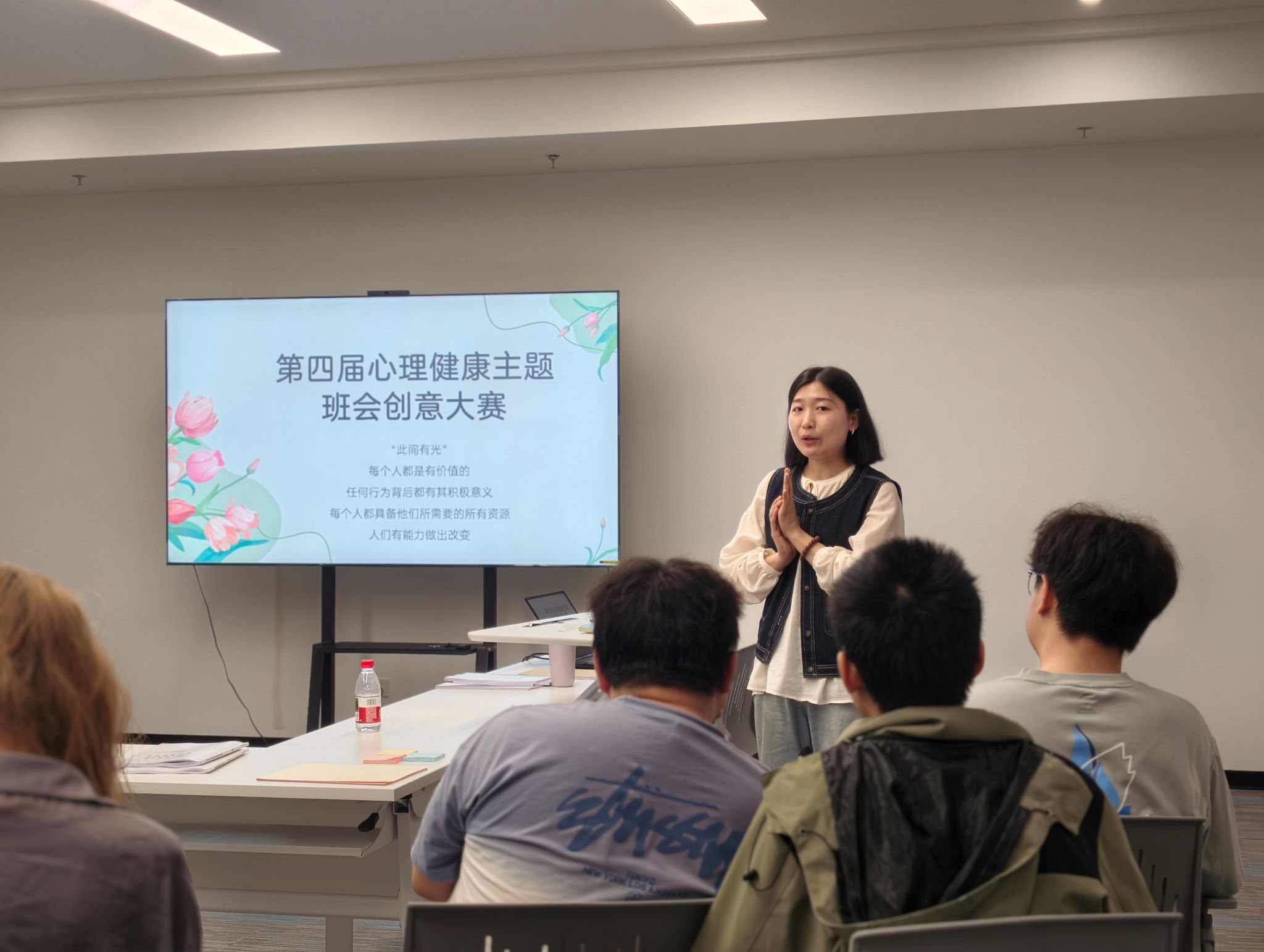 培训的最后,付彩红向全体心理委员宣布资源与安全学院第四届心理健康主题班会创意设计大赛启动。本次大赛以“此间有光” 为主题,希望这次主题班会能够带领同学们感受此时此刻身边的温暖和希望。针对班级心理健康活动开展,培训详细讲解场地资源、活动策划、人员分工、风险规避等实操要点,同时结合往届优秀班会案例展示,为大赛了提供创意参考与实践指引。